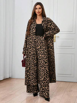 طقم حريمي قطعتين Clasi مجموعة بنطلون وقميص طويل بنمط نمر للنساء 2قطعة, خريف