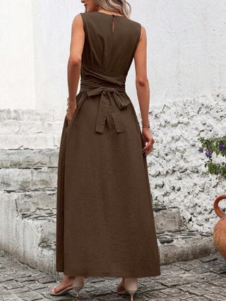 فساتين حريمي Clasi فستان ملفوف بدون أكمام بلون صلب بسيط، ارتداء يومي عادي للنساء