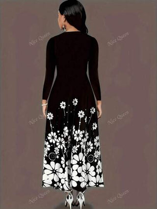 فساتين حريمي فستان مطبوع بأكمام طويلة موضة أوروبية وأمريكية جديدة للنساء لموسم الخريف