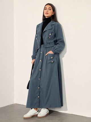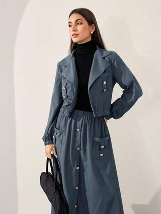 طقم حريمي قطعتين Mulvari طقم من 2 قطعة: جاكيت بتصميم جيب وياقة عالية والتجميع في الخصر، تنورة قطعتين، ملابس عمل رسمية كاجوال