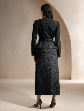 طقم حريمي قطعتين Anewsta طقم ملابس علوية سوداء نسيج متداخل وتنورة قطعتين للسيدات عادي