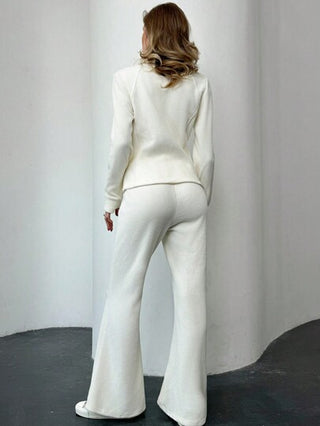 طقم حريمي قطعتين Privé طقم من قطعتين: 2 جاكيت ملائم وسروال بخصر مرتفع وواسع من القماش الفيلكرو الناعم، لطقم متناسق للنساء في فصل الخريف والشتاء