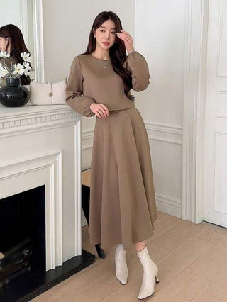 طقم حريمي قطعتين DAZY مجموعة ملابس علوية قصيرة بياقة طاقم وتنورة قصة A للنساء 2قطعة