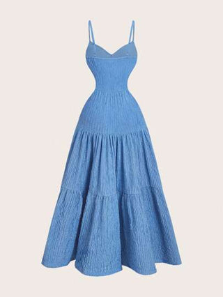 فساتين حريمي MOD فستان سباغيتي أزرق مطرز بالكشكشة للمرأة، فستان أنيق وجميل للمناسبات والأعياد والحفلات والاستقبالات والخروج