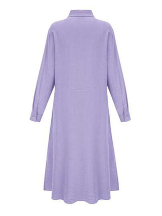 فساتين حريمي فستان قميص كاجوال أنيق طويل الأكمام أحادي الصدر بلون واحد للنساء