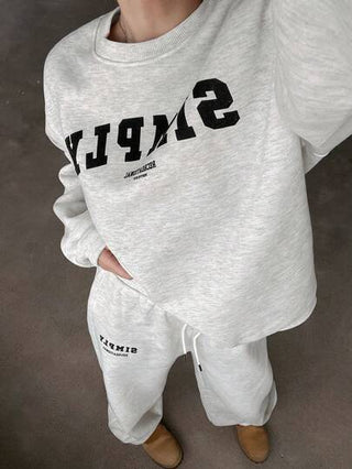 طقم حريمي قطعتين DAZY مجموعة من 2 قطعة قميص ثقيل رياضي نسائي بخياطة ملساء وقلنسوة ذات رقبة مستديرة، وقميص رياضي مطبوع عليه حرف