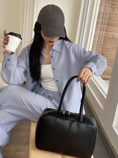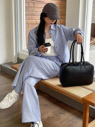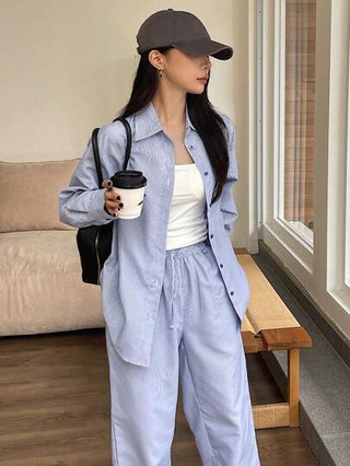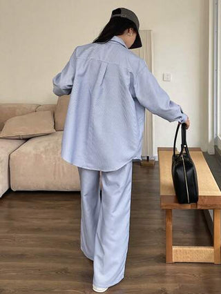 طقم حريمي قطعتين DAZY قطعتان/مجموعة بدلة نسائية قميص واسع مخطط وبنطلون ساق واسعة