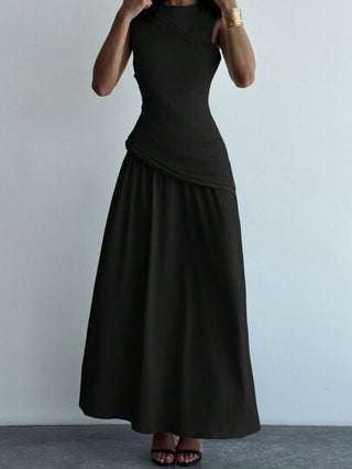 فساتين حريمي Aloruh فستان أنيق جديد بياقة مستديرة وأكمام غير متماثلة وخصر مربوط بخط A للارتداء طوال العام