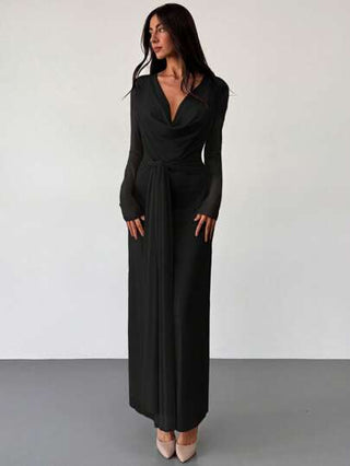 فساتين حريمي Aloruh فستان طويل الأكمام من الشبك بياقة منخفضة منسدلة، لون المشمش، تناسب ضيق، رومانسي للمواعيد والمناسبات