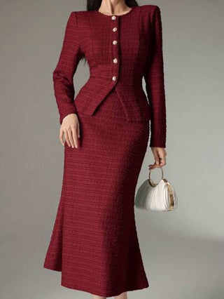 طقم حريمي قطعتين Modelyn 2 مجموعة لباس نسائي أنيق لون واحد، جاكيت وتنورة ذيل حورية البحر، مجموعة قطعتين للخريف