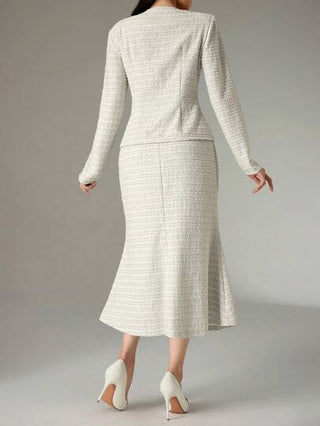 طقم حريمي قطعتين Heiryn مجموعة من قطعتين للنساء: بليزر أحادي الصدر أكمام طويلة ذو ياقة مستديرة ، وتنورة متوسطة الطول شكل ذيل السمكة، طقم أنيق للخريف/الشتاء