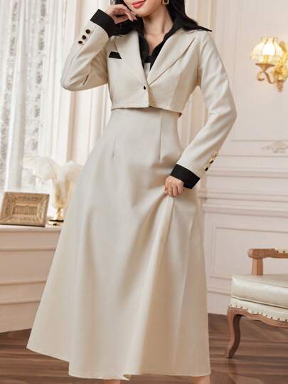 طقم حريمي قطعتين Modelyn طقم فستان طويل بلا أكمام وجاكيت بألوان متباينة أنيق للنساء ، مجموعة قطعتين للخريف