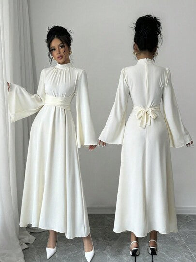 فساتين حريمي Rafferiza فستان طويل للنساء بياقة واقفة ، أكمام طويلة، موحد اللون مينيماليست، فستان كاجوال للارتداء اليومي