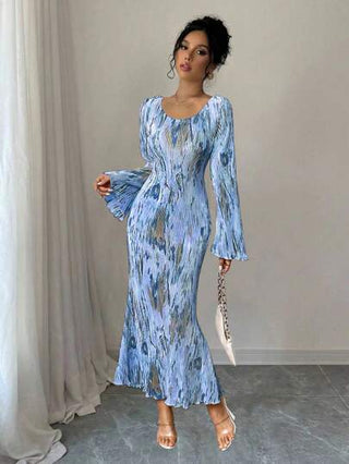 فساتين حريمي Rafferiza فستان نسائي ضيق بخاصية الربط المصبوغ بأسلوب الصباغة،بذيل متموج، القماش مكروش من الساتان، بلون المشمش الفاتح
