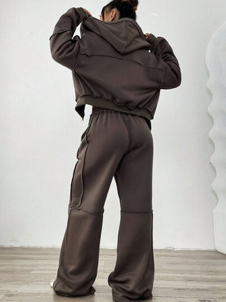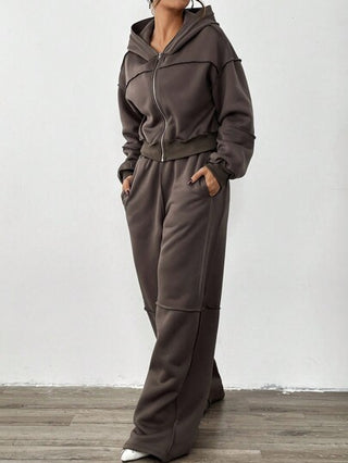 طقم حريمي قطعتين INAWLY مجموعة من قطعتين للنساء، هوودي سويت شيرت أسترخائي الكتف مع سوستة أمامية، وبنطال بخصر مطاطي وساق واسعة، طقم ملابس كاجوال للخريف