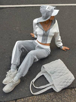 طقم حريمي قطعتين Tropiluxe 2 حبة/مجموعة هوديي رياضي بلوك كلاور للنساء مع بنطلون سحاب