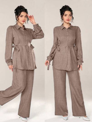 طقم حريمي قطعتين Graceveil مجموعة بلوزة و بنطلون كاجوال بأزرار أمامية وأكمام طويلة قطعتان، محتشم، للنساء