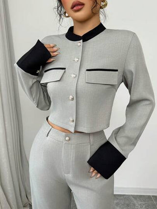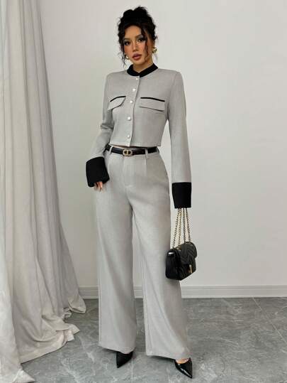 طقم حريمي قطعتين Gloray بدلة فاخرة مكونة من جاكيت وبنطال مع تداخل الألوان للارتداء أثناء التنقل