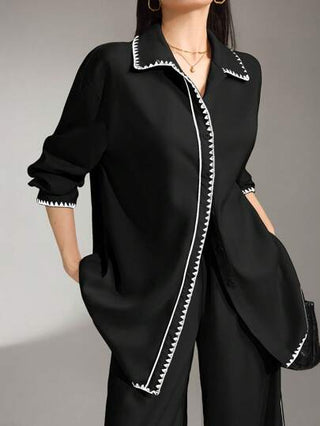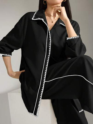 طقم حريمي قطعتين Heiryn العيد بدلة حريرية من قطعتين قميص وبنطلون مع تشطيب متباين، مناسبة للسفر والاستخدام اليومي الكاجوال في الصيف