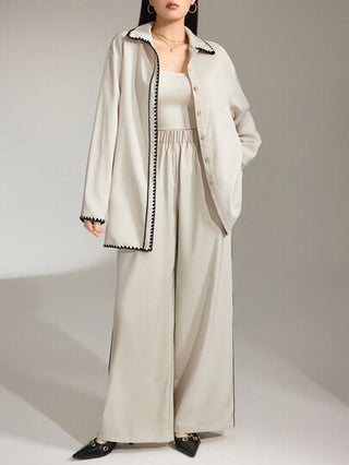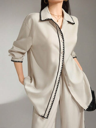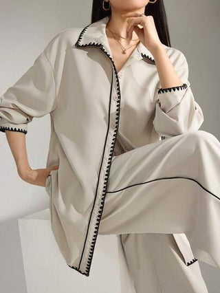 طقم حريمي قطعتين Heiryn بذلة نسائية مكونة من قميص وبنطلون باستخدام خطوط التباين المميزة للارتداء اليومي