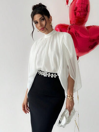 طقم حريمي قطعتين Firerie طقم سيدات أنيق مكون من توب منتفخ وتنورة مزخرفة بالجواهر