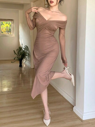 فساتين حريمي DAZY فستان أنيق بدون أكتاف ذو لون سادة للنساء