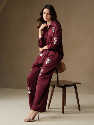طقم حريمي قطعتين Anewsta طقم قميص وبنطلون كاجوال حضري للنساء، بتطريز ترتر أخضر فاتح