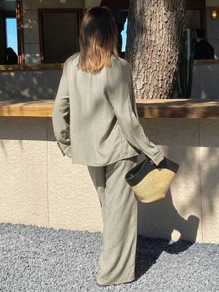 طقم حريمي قطعتين Livesso طقم بلوزة فضفاضة وبنطال ساق واسع لون أحادي للنساء مجموعة مكونة من 2 قطع