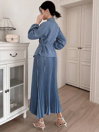طقم حريمي قطعتين DAZY مجموعة قطعتين للسيدات: قميص ربطة موحد اللون وتنورة منسدلة