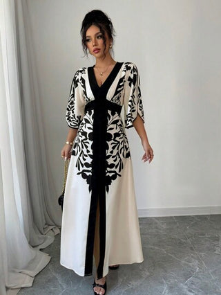 فساتين حريمي Rafferiza فستان طويل كاجوال للنساء بألوان صلبة وطباعة زهور على اكمام طويلة وتصميم لحمي