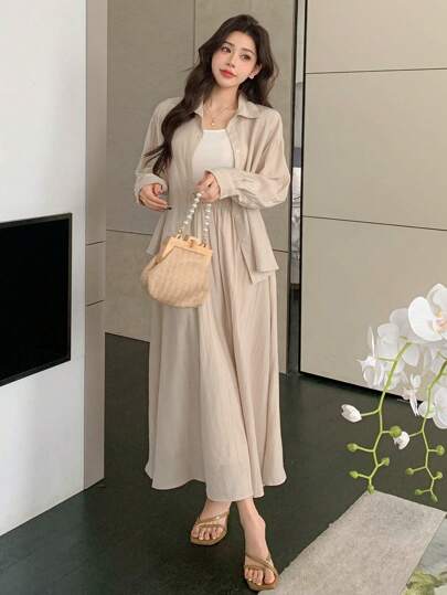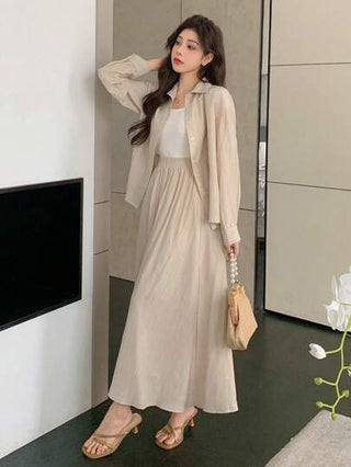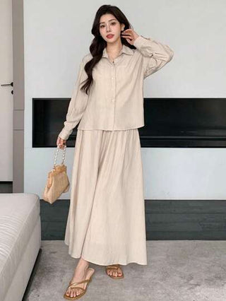 طقم حريمي قطعتين DAZY مجموعة تنورة وقميص بلون واحد للنساء 2 قطعة