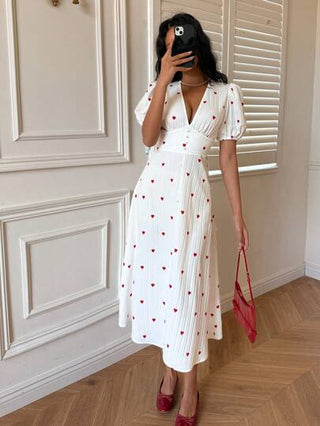 فساتين حريمي Siren Gaze فستان أبيض ليوم الفالنتاين للنساء، فساتين نسائية أنيقة لفصل الصيف، فستان أنيق وواسع للسيدات، فستان كاجوال للسيدات