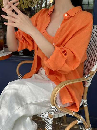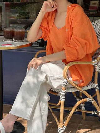 طقم حريمي قطعتين DAZY مجموعة قميص بلوزة نسائية من قطعتين، بدون أكمام وآكمام طويلة، بلون برتقالي مشرق، للارتداء في العطلات والشاطئ ، للربيع/الصيف/الخريف