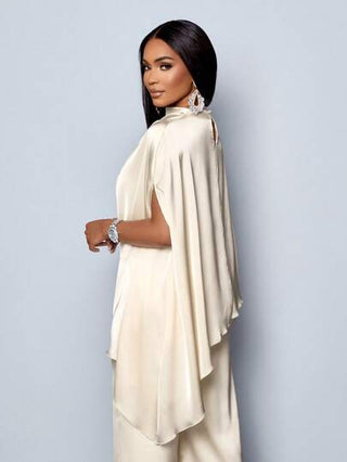 طقم حريمي قطعتين SOLERSUN مجموعة من البلوزة ذات الأكمام الخفاش الأنيقة باللون الأحادي وصل العنق الأنيق مع السراويل الطويلة ذات الساق المستقيمة الأنيقة