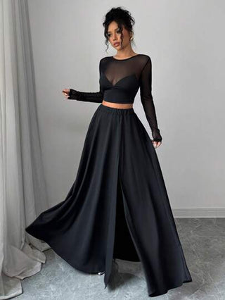 طقم حريمي قطعتين Calvaya مجموعة بلوزة تي شيرت من الشبك والرقع وتنورة طويلة متوسطة الطول، طقم ملابس متناسق أنثوي وجذاب، مناسب للعطلات والعيد، حفلات الموسيقى والرجوع للمدرسة، وارتداء في الربيع والصيف