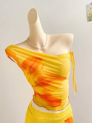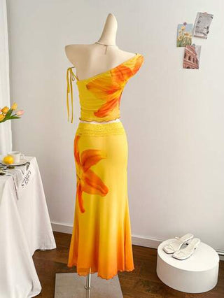 طقم حريمي قطعتين Soleia مجموعة من 2 قطعة ، ملابس علوية محصور من شبكة محبوكة بنقشة صبغ الربطة ،و تنورة ماكسي نمط البحر الأخضر، ملابس للعطلة الجميلة