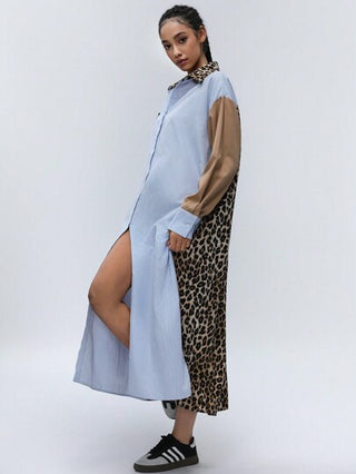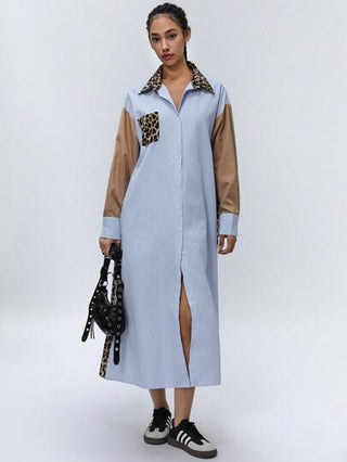 فساتين حريمي Aveloria Affinna فستان قميص مزين بطبعات مختلفة للون الفهد والألوان المتناسقة والشرائط ، بأكمام طويلة ، بطراز الموضة للشباب