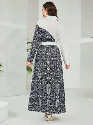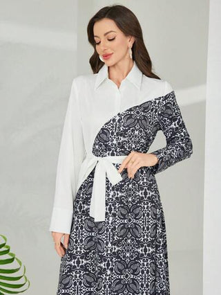 فساتين حريمي Mulvari فستان طباعة ألوان عصري ذو خصر مربوط متوسط الطول ، ربيع/صيف 2025