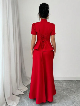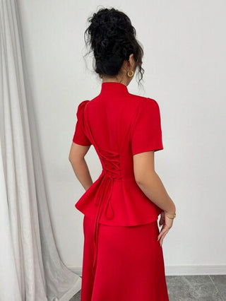 طقم حريمي قطعتين Gloray 2 قطعة / مجموعة لربطة العنق على الطراز الصيني وتنورة واحدة لون أحادي الصدر مع تنورة بخط الأحرف الكبيرة للنساء