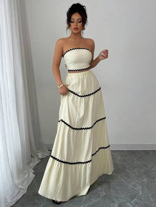 طقم حريمي قطعتين Calvaya مجموعة 2 قطعة من الشريط الأنيق الأعلى والتنورة للنساء