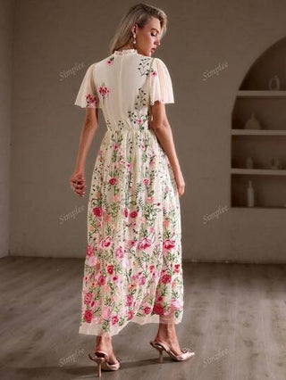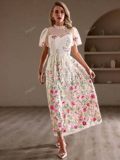فساتين حريمي Simplee فستان جديد للربيع من الشبك المطرز بالزهور لحفلات الاستقبال الرسمية للنساء