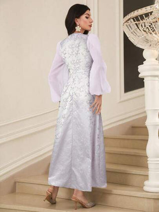 فساتين حريمي Modelyn فستان من نساء ذو أكمام فانوس جميلة ومطرزة بالحبكة
