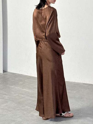 طقم حريمي قطعتين FRIFUL مجموعة ملابس علوية وتنورة بسيطة برقبة دائرية للنساء في الملابس الكاجوال، قطعتان
