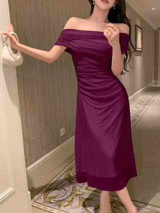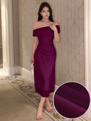 فساتين حريمي DAZY فستان متوسط الطول أنيق للنساء بتصميم أكتاف منكشفة وأكمام قصيرة، فستان صيفي