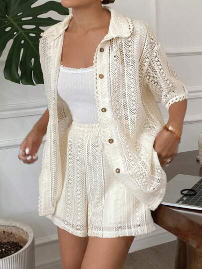 طقم حريمي قطعتين Frenchy مجموعة ملابس علوية كم قصير فضفاضة وشورت من لون سادة للنساء، بتصميم بسيط وأنيق للارتداء اليومي والكاجوال