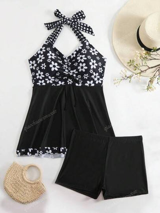 طقم تانكيني حريمي طقم ملابس السباحة للنساء ذو طبعة زهرية وتصميم شرائط متقاطعة وسحاب للتقسيم ، ملابس السباحة وإطلالة الشاطئ الصيفية ، بدلة سباحة نسائية ذات أربطة رفيعة