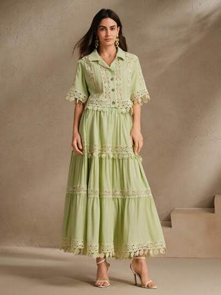 طقم حريمي قطعتين Anewsta 2 قطعة طقم ملابس نسائية أنيقة ورومانسية للعطلات، بلوزة مزخرفة بالأزهار والشرابات الخضراء وتنورة طويلة، للربيع/الصيف