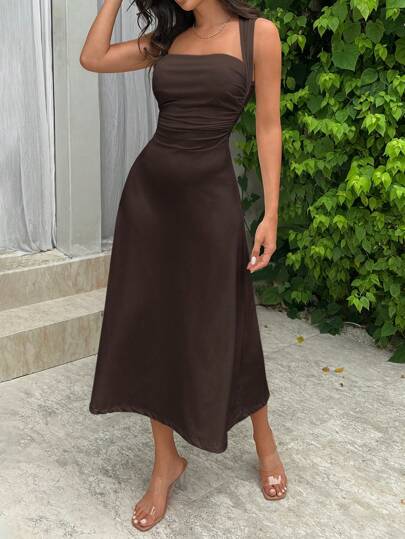 فساتين حريمي Firerie فستان طويل بتجعيد من جهة للسيدات بلون أحادي