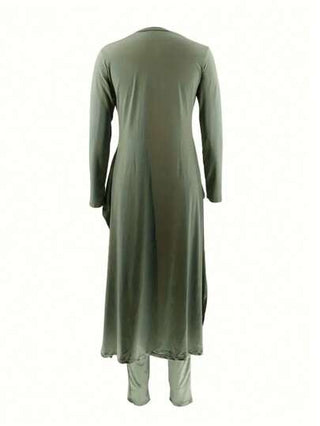 طقم ملابس علوية وبنطلون بطبعات حرفية وألوان صلبة بأكمام طويلة للنساء 2 قطعة