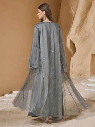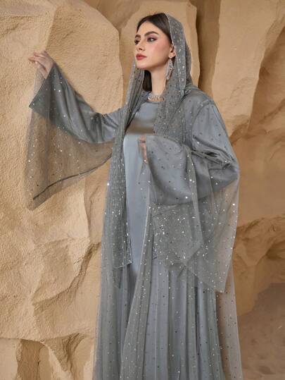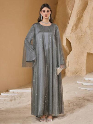 طقم حريمي قطعتين Al Najma طقم من السترة ذات الشبكة اللماعة والفستان الأنيق والمحتشم للنساء، طقم ملائم جديد ذو قطعتين